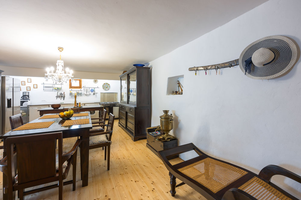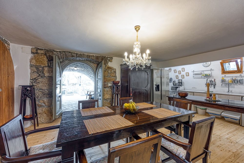 The main villa has two bedrooms with en -suite shower rooms, on the first floor of main house with separate sea view terraces, ground level is separated in kitchen and dining area, and living room area. The third bedroom is situated 10 meters away in a separate stone annexe with separated small garden relaxing area, and consists of a bedroom with 4 poster double size bed and en-suite shower room. Rooms are spacious, mahogany furnished and can accommodate up to 6 people what is ideal for families or business and corporate guests.
