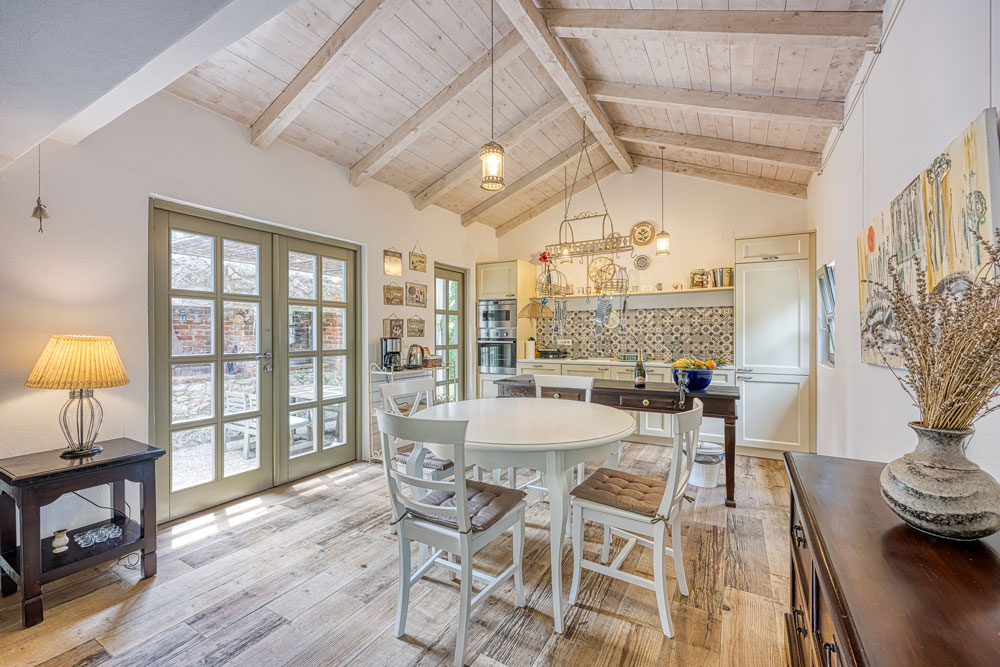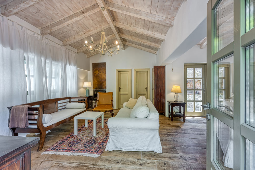 The villa is one floor main house, with bedroom and en-suite bathroom, the second bedroom is situated 10 meters away in a separate stone annexe near pool, and consists of a double bed and en-suite shower room. The kitchen and dining room are attached to main house, on living room area. Rooms are spacious, fully furnished and can accommodate up to 4 people.